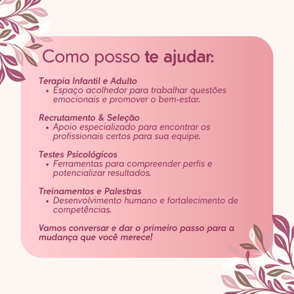 Tenho mais de 19 anos de Experiência em Psicologia e Aconselhamento em Saúde mental.